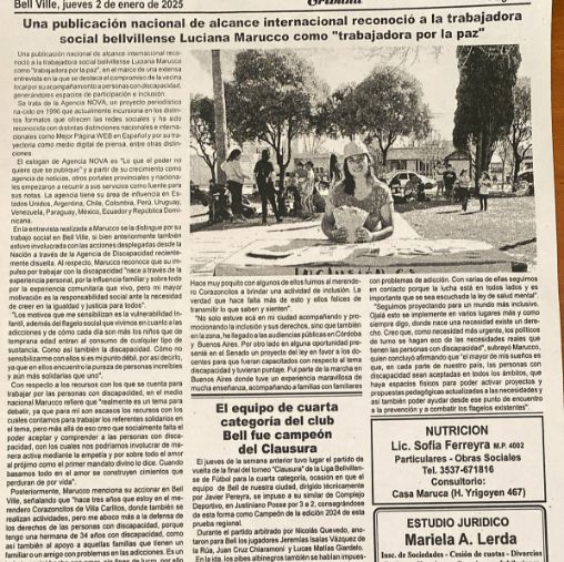 Una publicación nacional de alcance internacional reconoció a la trabajadora social bellvillense Luciana Marucco como «trabajadora por la paz».